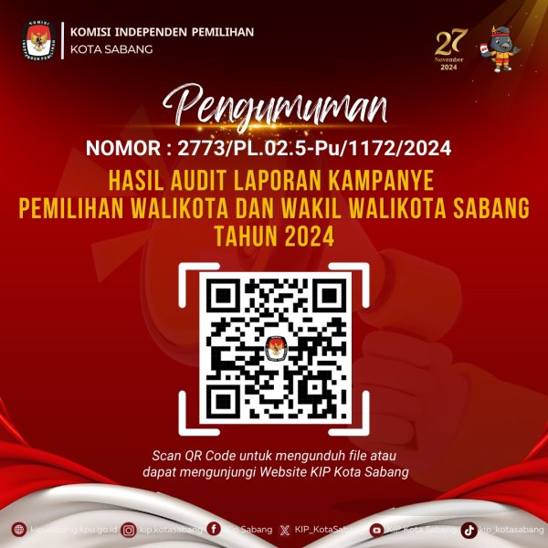Teman Pemilih, berikut Pengumuman KIP Kota Sabang tentang Hasil Audit Laporan Kampanye Pemilihan Walikota Dan Wakil Walikota Sabang Tahun 2024, klik download untuk mengunduh file pengumuman, selengkapnya Teman Pemilih juga dapat mengunduh:
