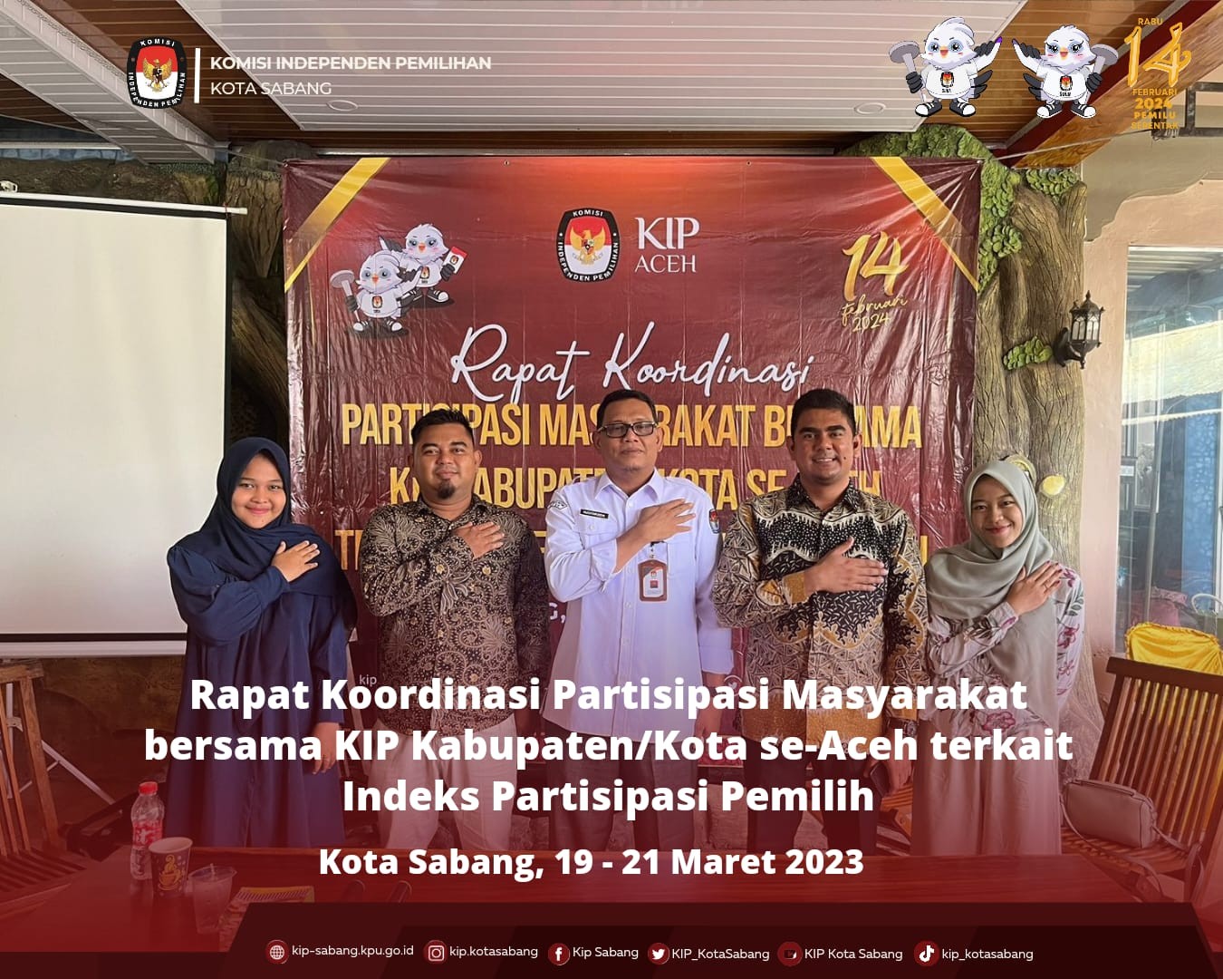 #TemanPemilih, KIP Kota Sabang turut mengikuti kegiatan Rapat Koordinasi Partisipasi Masyarakat bersama KIP Kabupaten/Kota se-Aceh terkait Indeks Partisipasi Pemilih, bertempat di Iboih, Sabang, 19 s/d 21 Maret 2023.
