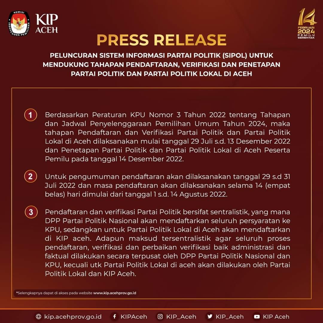 Untuk lebih jelasnya, mari kita simak Press Relese yang dikeluarkan oleh KIP Aceh.