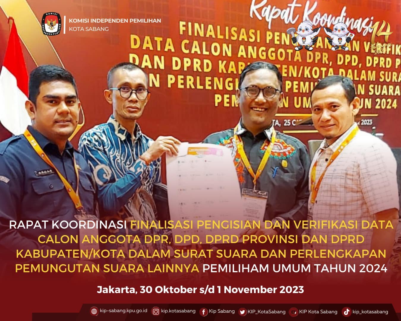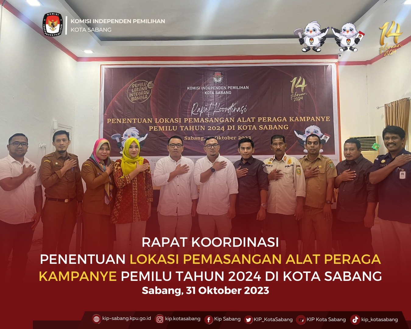 Komisi Independen Pemilihan Kota Sabang menyelenggarakan Rapat Koordinasi Penentuan Lokasi Pemasangan Alat Peraga Kampanye Pemilu Tahun 2024 di Kota Sabang. (31/10)